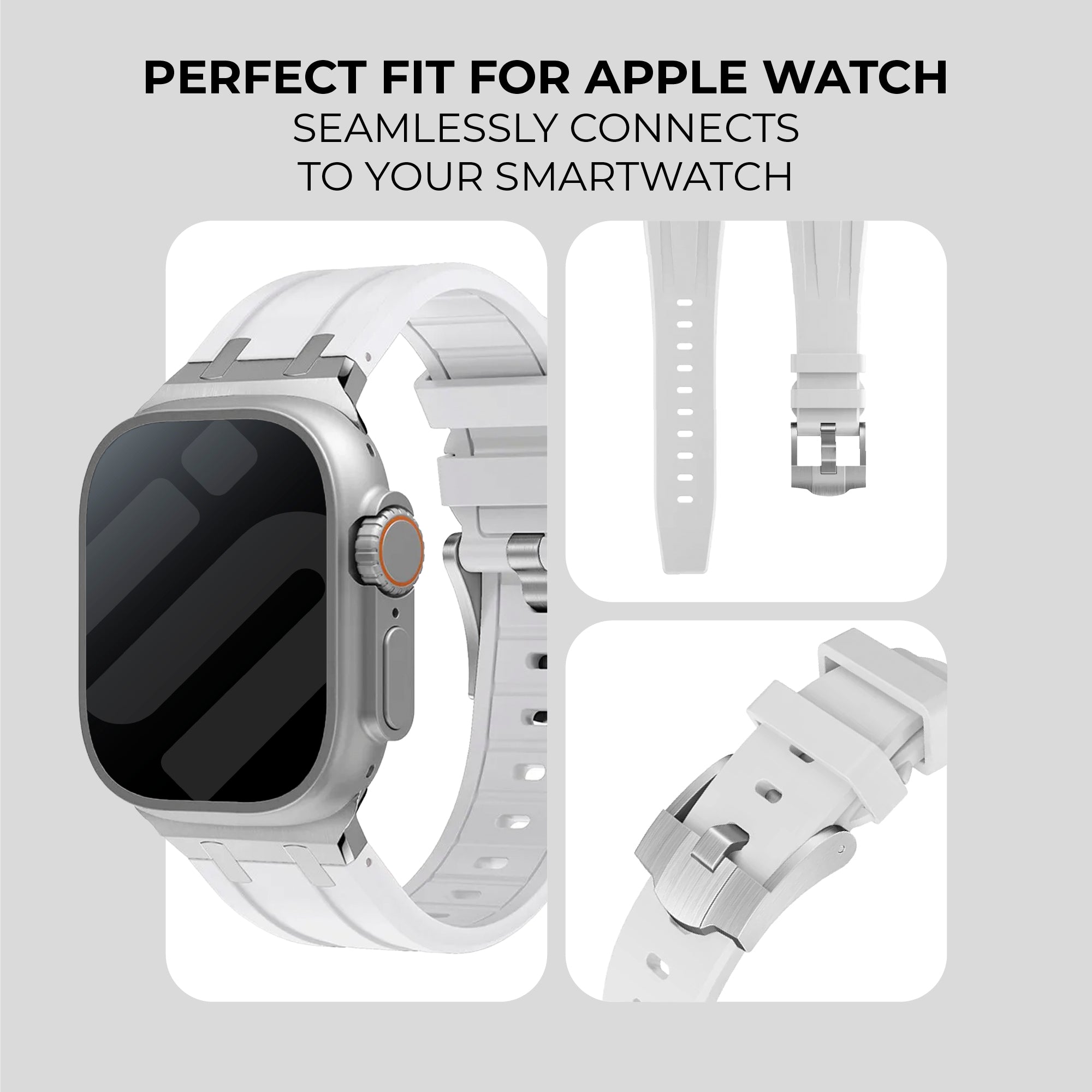 Apple Watch Luxury Liquid Silicone Strap (White/Silver)
