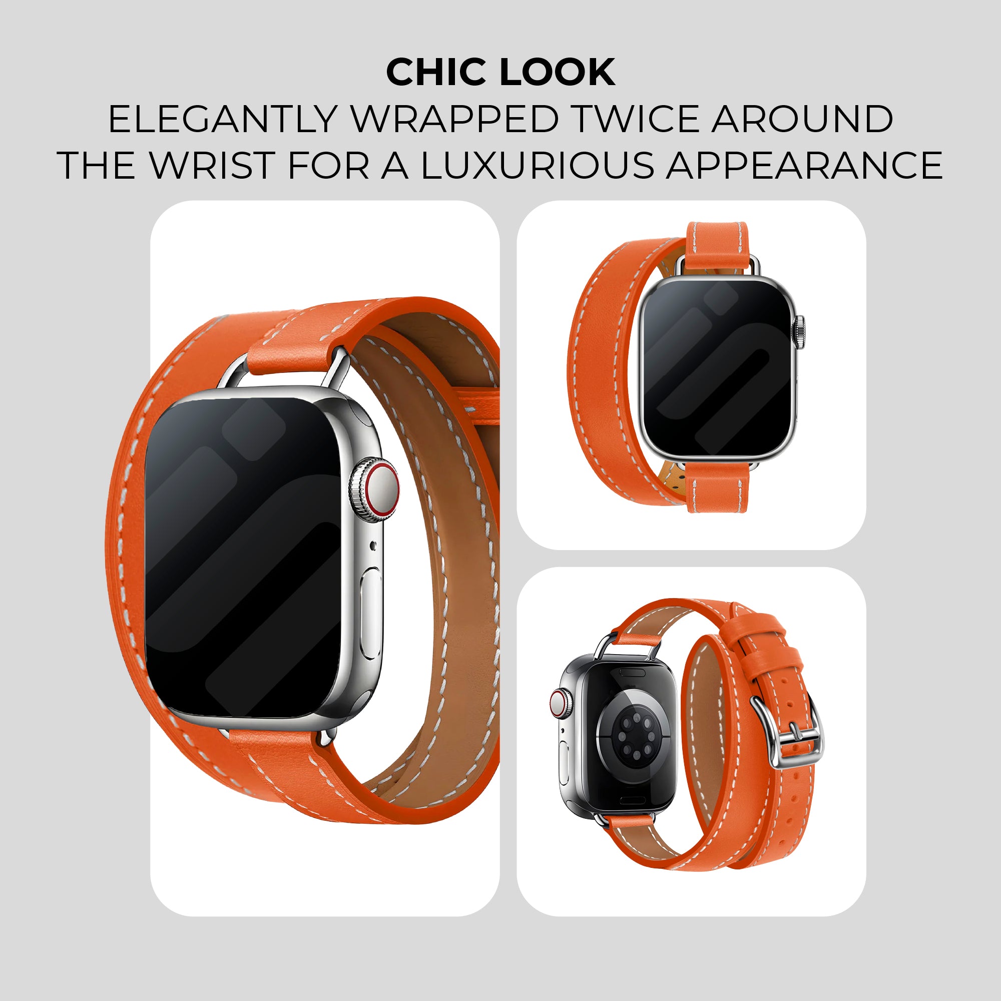 Apple Watch Leather Double Tour Strap (Orange)