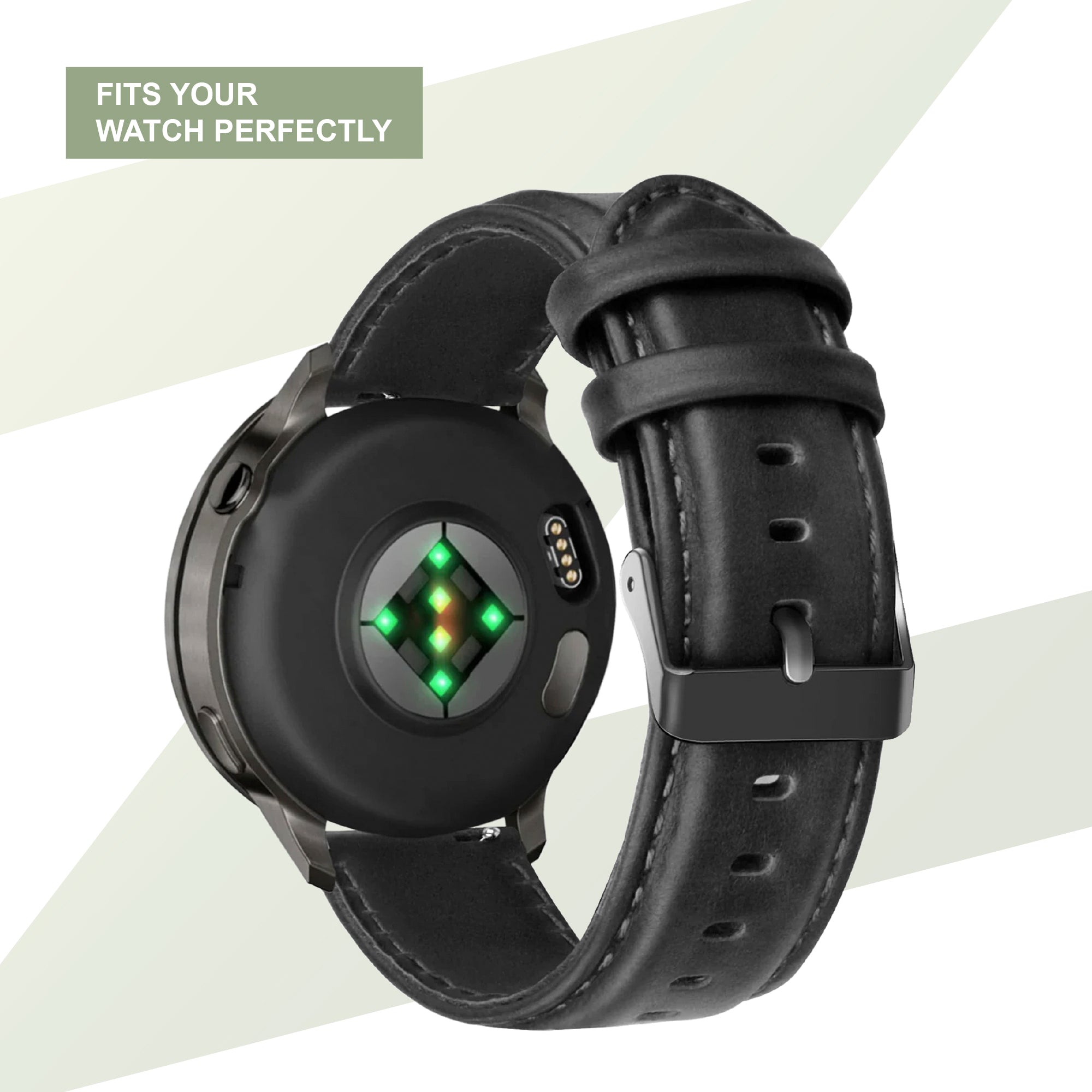 Bandz Garmin Forerunner 165 Leather Strap 'Classic' (Black)
