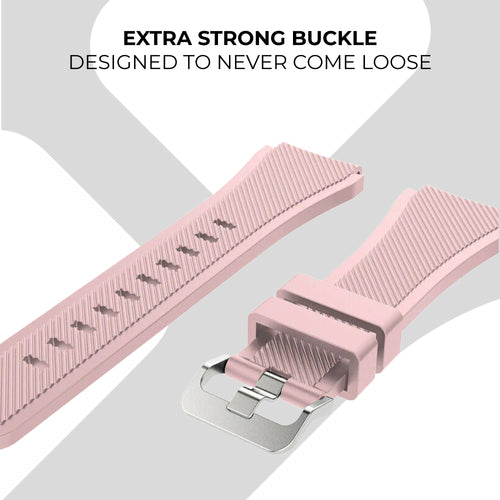 Strong watch band made for sports. Give your smartwatch a great new color with one of our silicone wristbands. The flexible material fits comfortably around the wrist and does not irritate during your activities.