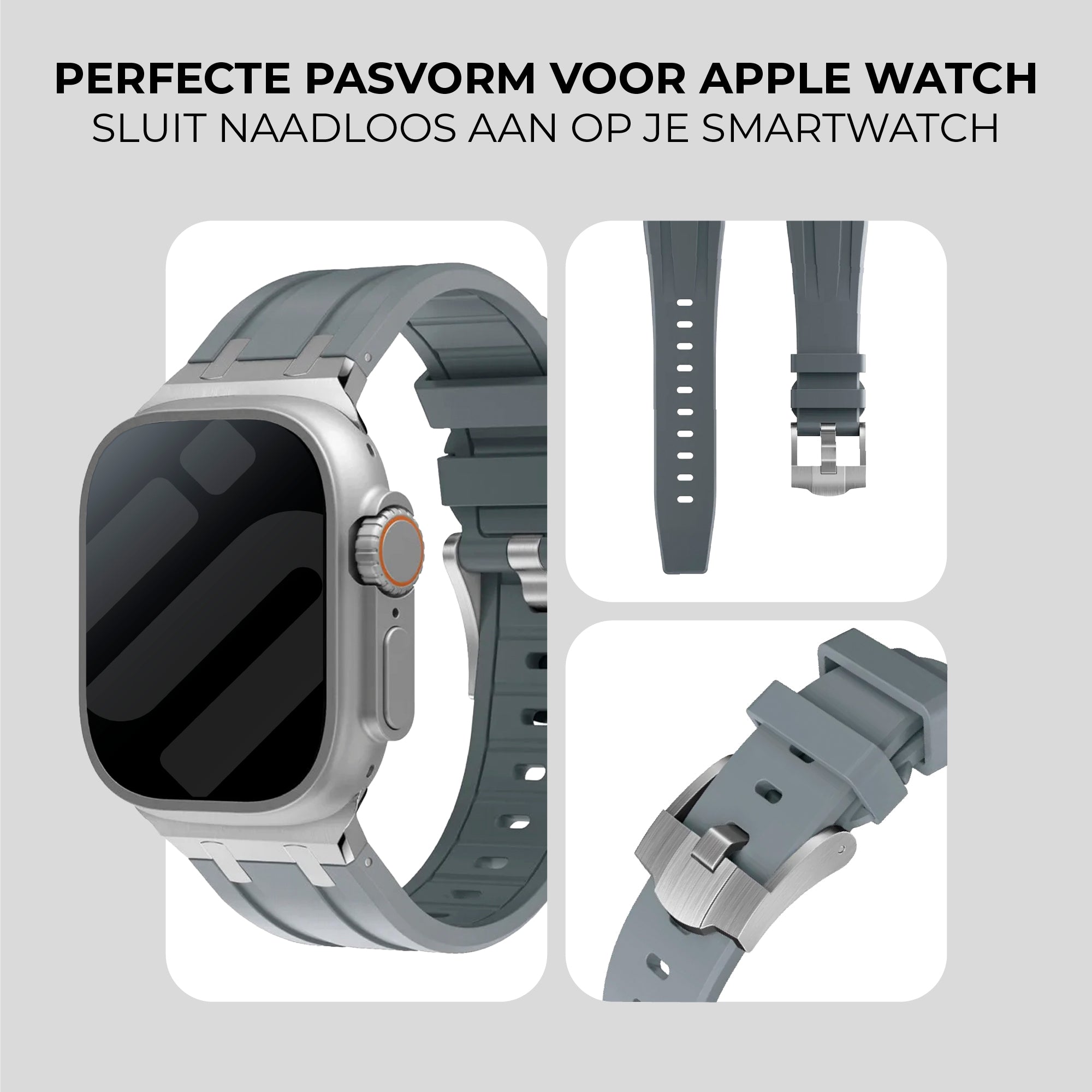Apple Watch luxe liquid silicone band (donkergrijs met zilver)