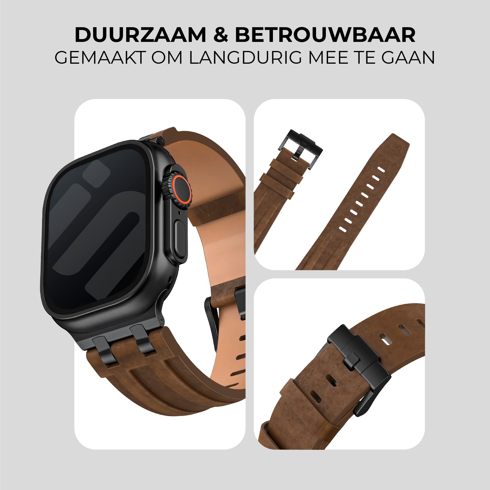Leren smartwatch bandjes zijn erg duurzaam en gaan een lange tijd mee. De levensduur hangt uiteraard af van hoe de band gedragen en verzorgd wordt.