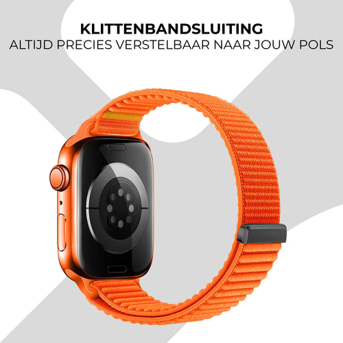Geef je smartwatch een stijlvolle en comfortabele uitstraling met deze levendige oranje nylon band, speciaal ontworpen voor de Apple Watch Ultra.