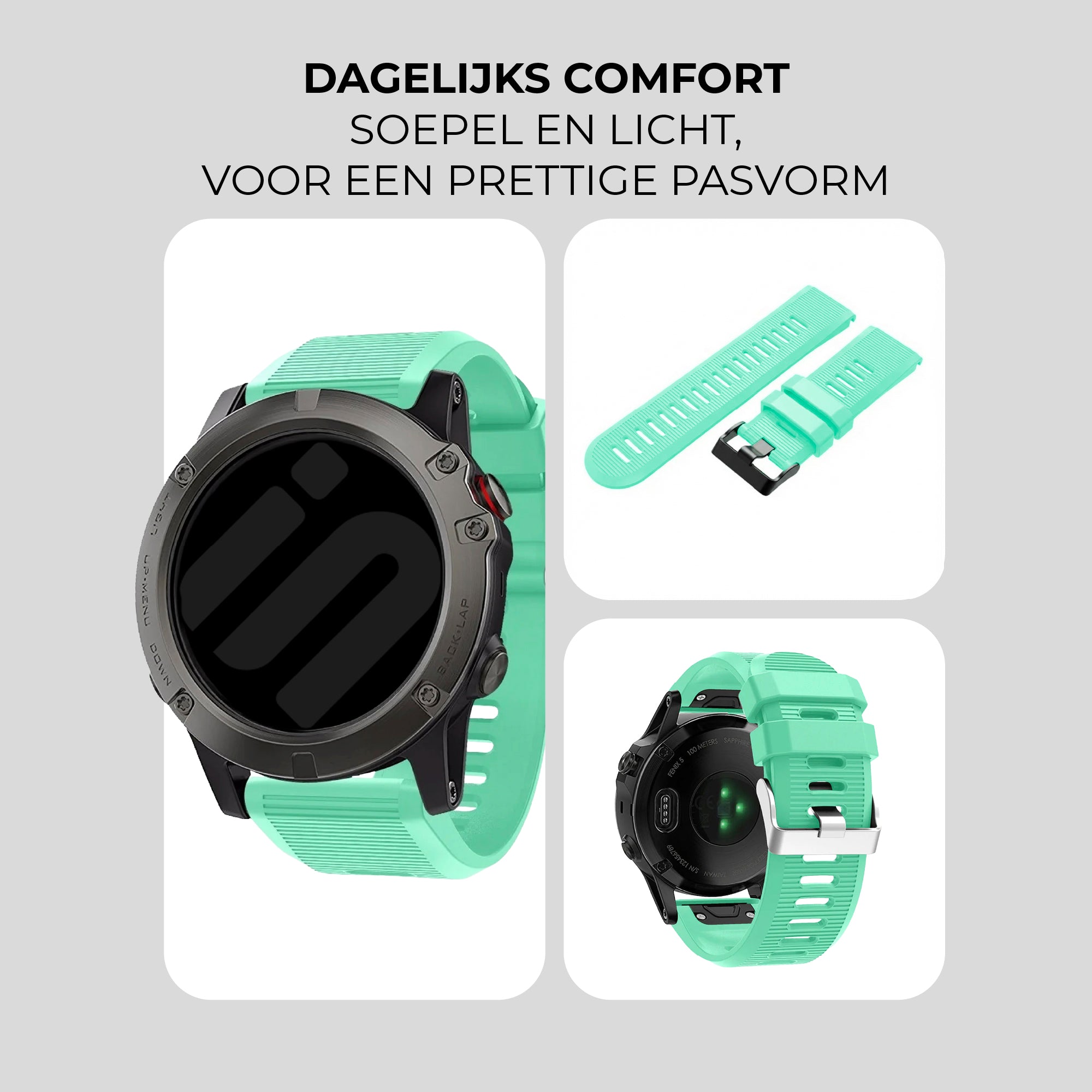 Siliconen is een goed materiaal voor horloge bandjes, omdat het erg duurzaam en water- en zweetbestendig is. Dit betekent dat het heel veelzijdige bandjes zijn, geschikt voor dagelijks dragen maar ook sporten en zwemmen.