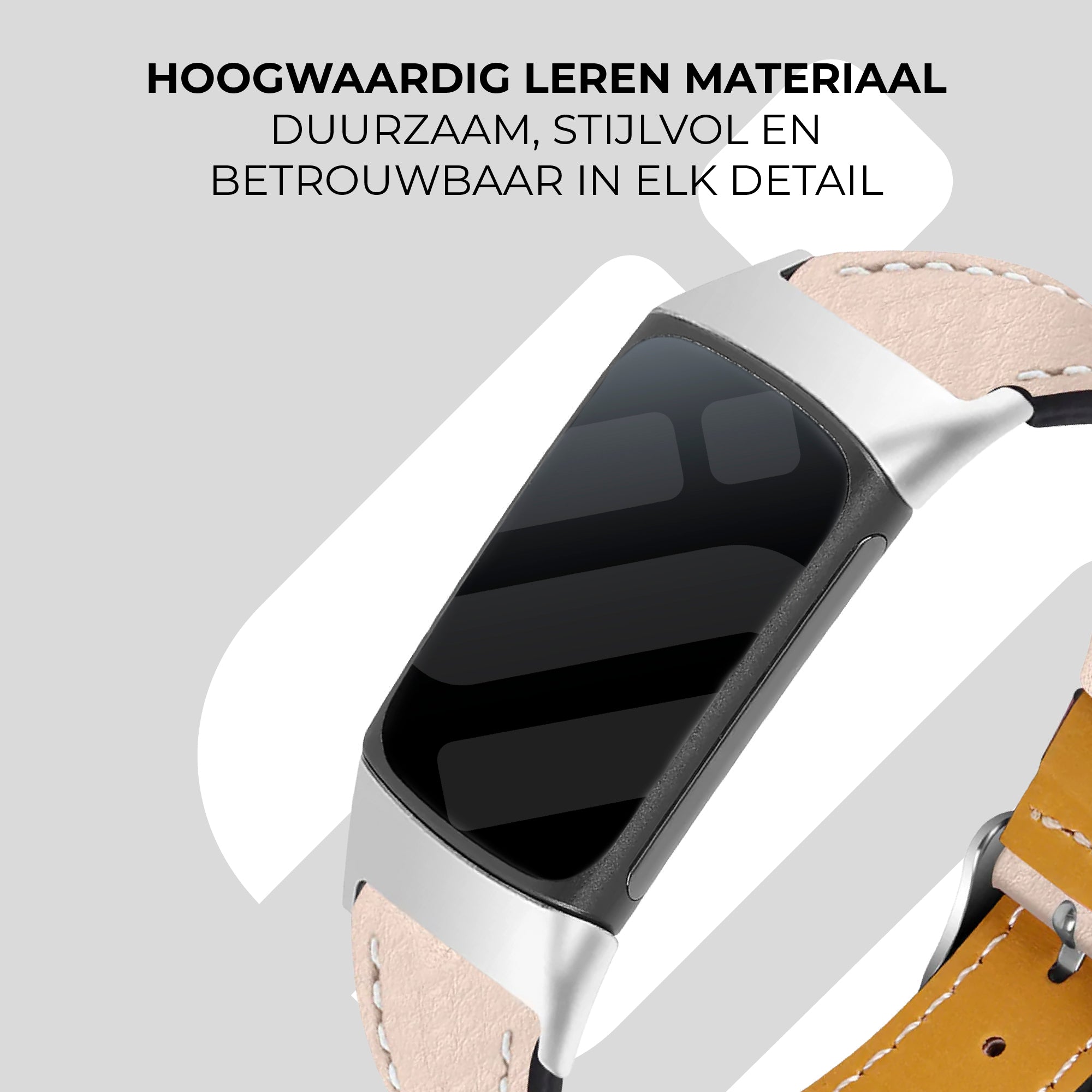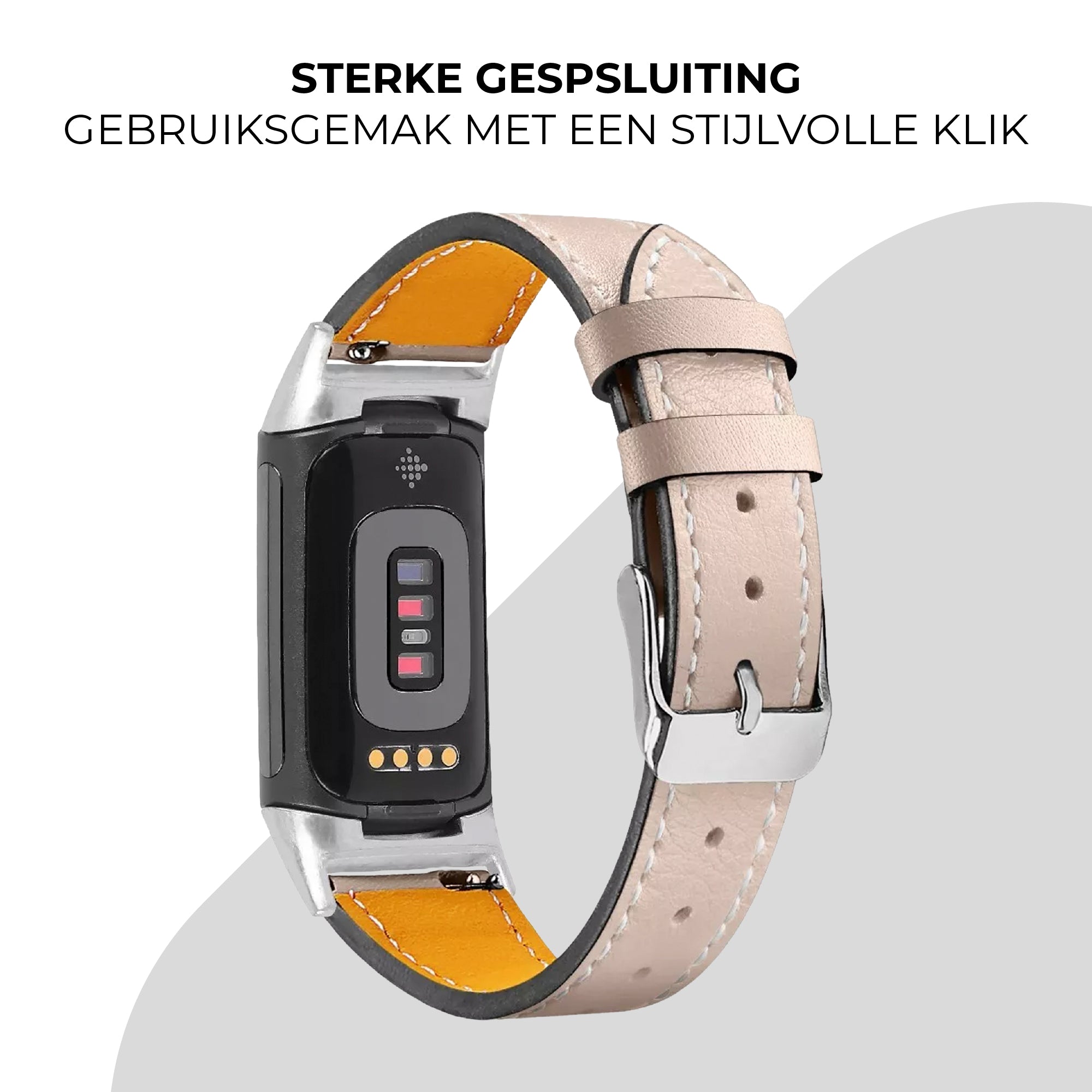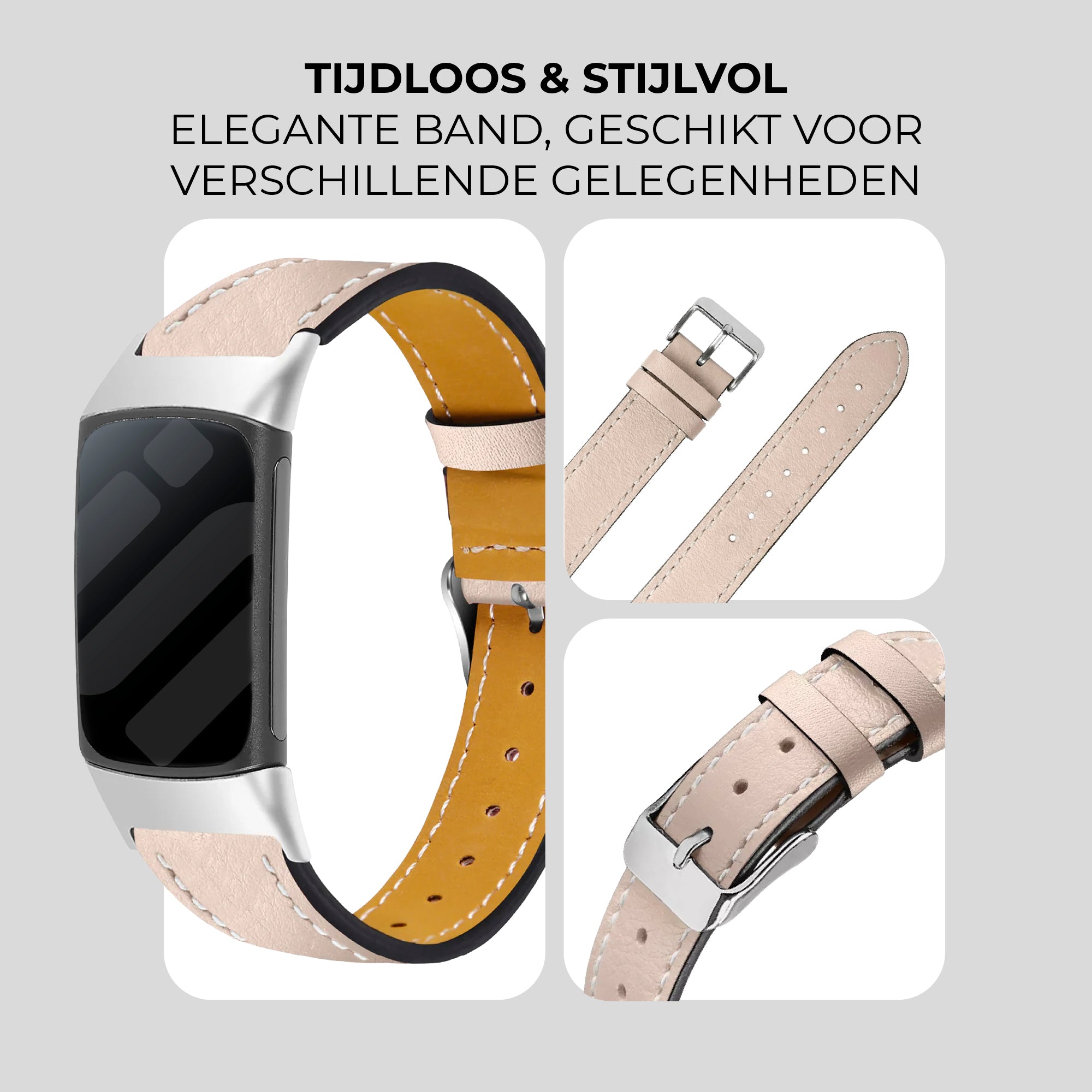 Fitbit Charge 5 modern leren bandje (lichtbeige)