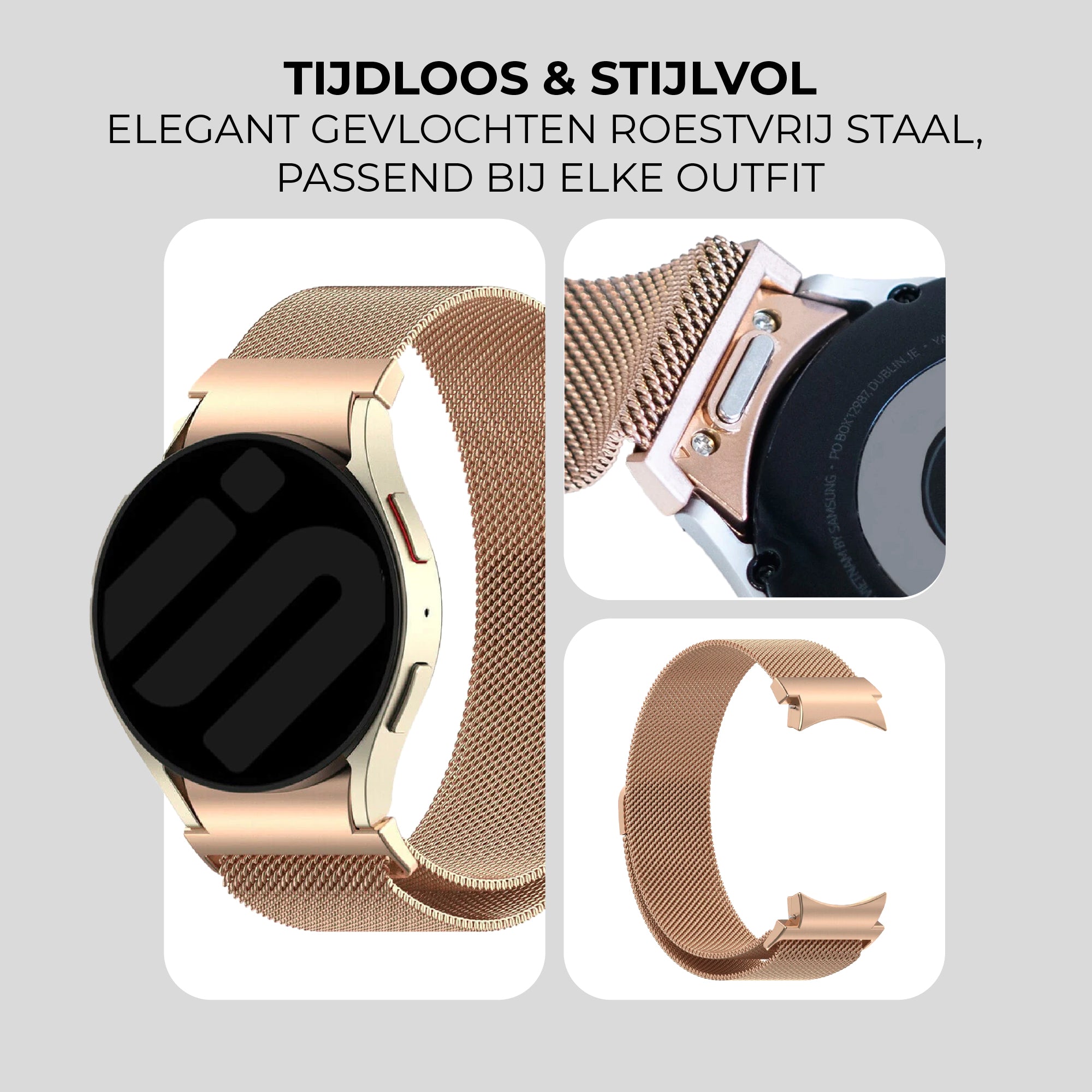 Samsung Galaxy Watch 4 Classic 46mm 'One push' Milanese band (rosé goud)