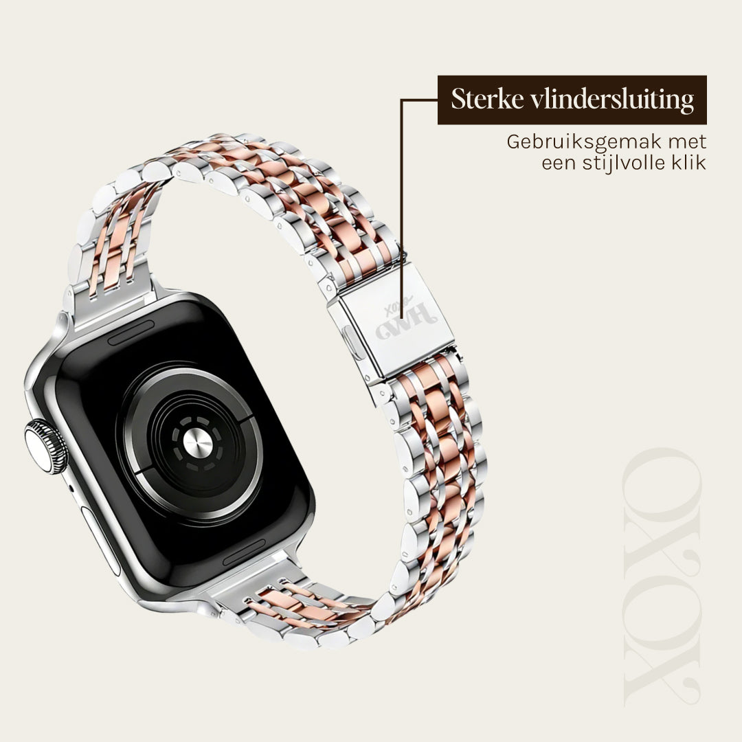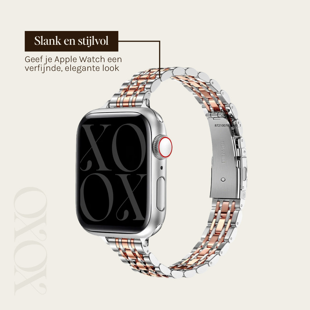 xoxo Wildhearts Apple Watch stalen bandje 'slim' (zilver/rosé goud)
